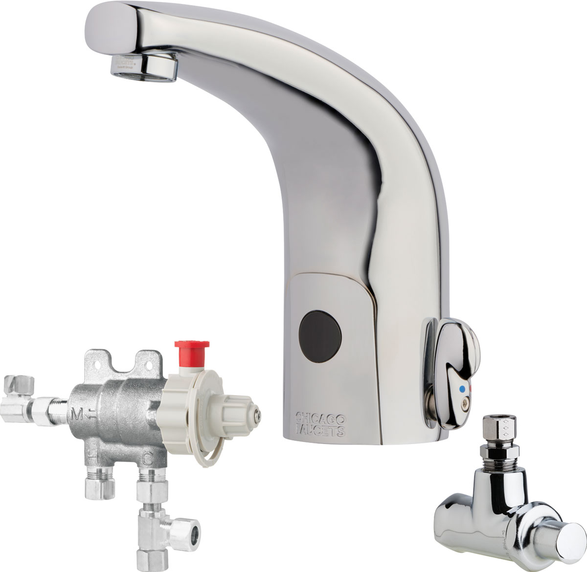 Touch-free, programmable faucet with mixing valve and supply stops, for Patient Care applications