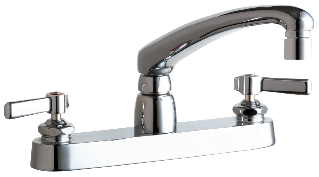 Deck-mounted manual faucet with 8" centers