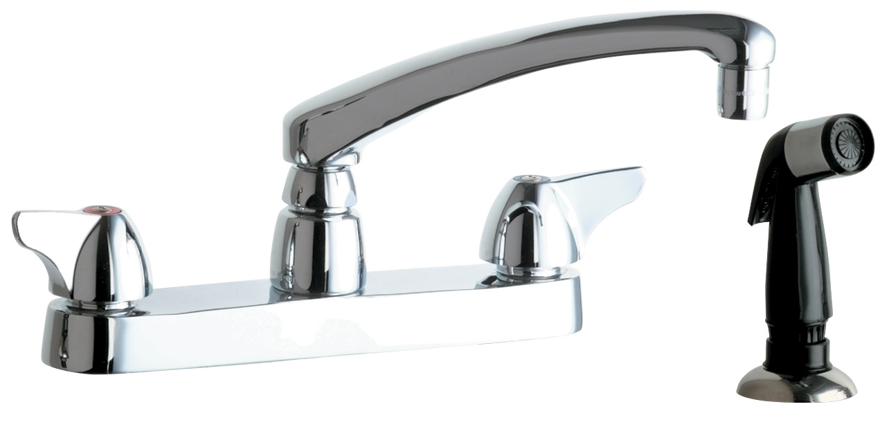 Deck-mounted manual faucet, 8" centers, with side spray